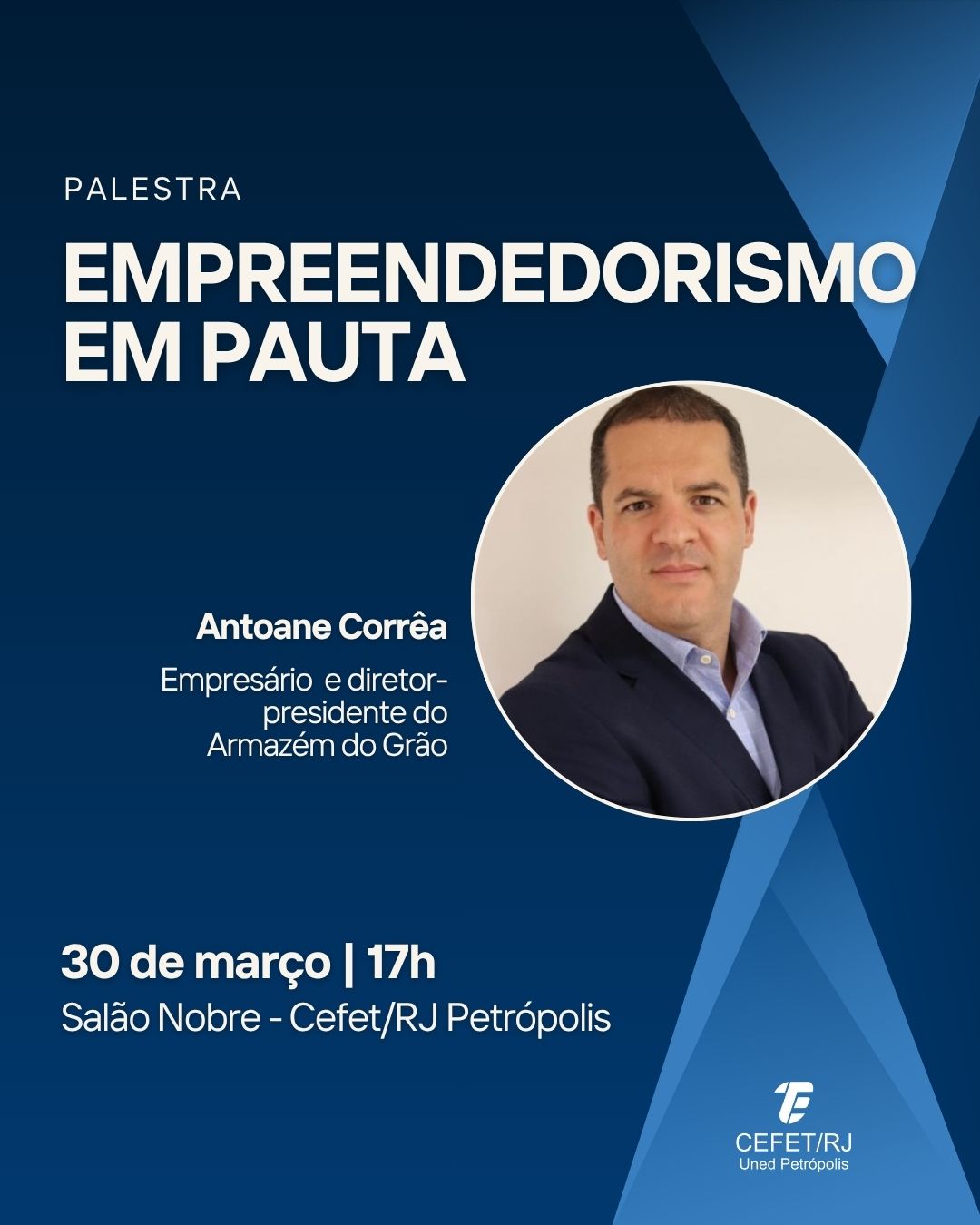 O Cefet/RJ Petrópolis promoverá na próxima segunda-feira, dia 30 de março, uma palestra sobre empreendedorismo com o empresário Antoane Corrêa. O evento acontecerá no Salão Nobre...