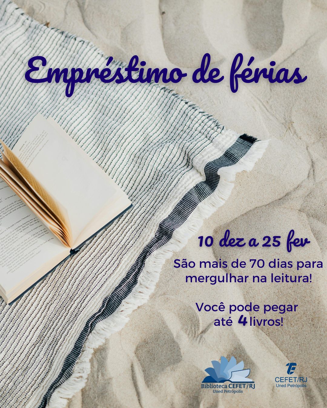 A Biblioteca do Cefet/RJ Petrópolis iniciou nesta quarta-feira, dia 10 de dezembro, o empréstimo prolongado durante o período de férias acadêmicas. Você poderá pegar até quatro...