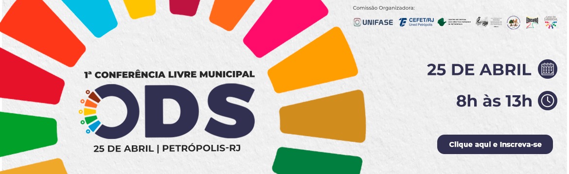 No dia 25 de abril, das 8h às 13h, o Cefet/RJ Petrópolis participará da 1ª Conferência Livre Municipal dos Objetivos de Desenvolvimento Sustentável (ODS), promovida pela UNIFASE, em parceria com diversas organizações da sociedade civil. O evento é gratuito, aberto ao público e será realizado na UNIFASE (Rua Barão do Rio Branco, 1.003).