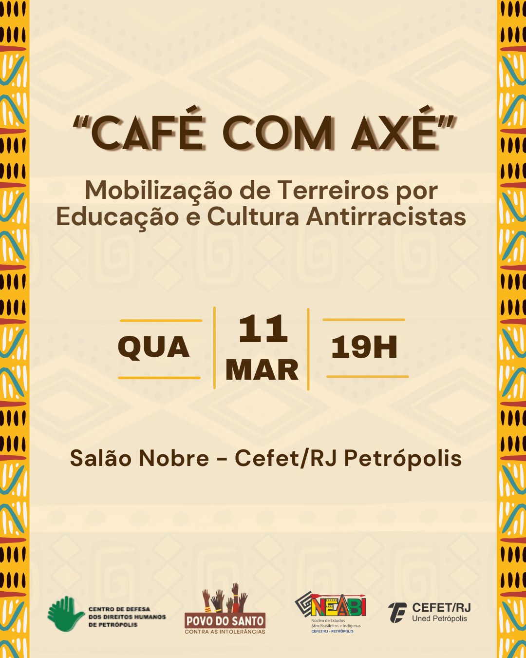 O Núcleo de Estudos Afro-brasileiros e Indígenas (Neabi) do Cefet/RJ Petrópolis, em parceria com o Coletivo Povo Santo, promove na próxima quarta-feira, dia 11 de março, o “Café...