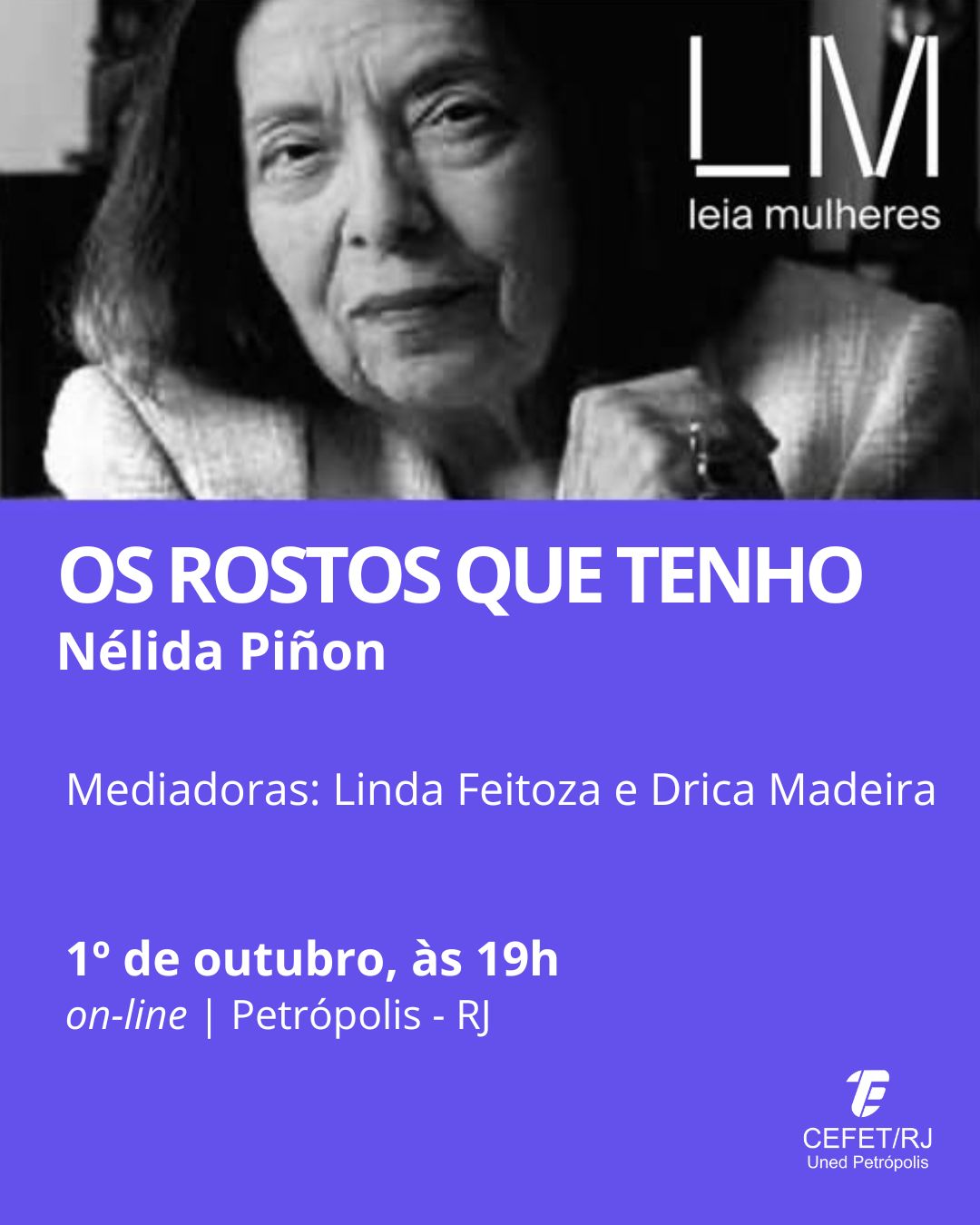 Em outubro, o clube de leitura Leia Mulheres Petrópolis vai debater Os rostos que tenho, da escritora carioca Nélida Piñon. O livro póstumo é considerado um testamento literário da autora, escrito em 147 capítulos curtos que lembram a estrutura de um diário. Nele, Nélida fala de sua obra, do seu processo de criação, dos desafios da carreira, de grandes amizades e traz reflexões sobre vida e morte.