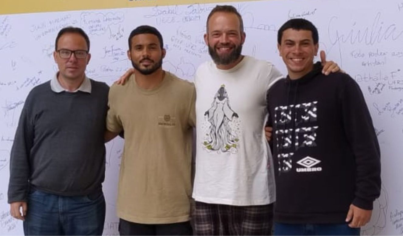 Foto: Da esq. para a direita: Marcelo Monsores, Hitallo Figueiredo, Felipe Ferreira (docente) e Jonas Abreu