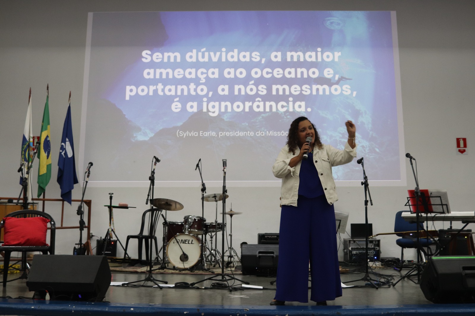 Viviane também chamou atenção para o papel vital dos oceanos, que cobrem 70% da superfície do planeta e produzem metade do oxigênio que respiramos. Ela explicou que a cultura oceânica é essencial para criar uma sociedade capaz de tomar decisões responsáveis sobre os recursos marinhos e garantir a preservação da vida. A palestrante defendeu que essa cultura precisa estar alinhada aos Objetivos de Desenvolvimento Sustentável da ONU, sendo sustentada por pilares como conhecimento, investimento, interesse, ação e engajamento. Para ela, a educação climática é um caminho fundamental para formar uma consciência coletiva em defesa do planeta.